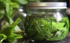 1. Μια χούφτα φρέσκα φύλλα μέντας τα οποία θα λιώσετε στο γουδί.