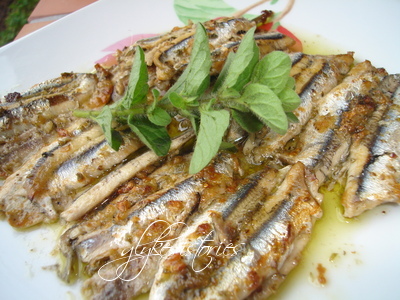 Αλατοπιπερώνουμε το γαύρο και προσθέτουμε τη ρίγανη, το σκόρδο πολτοποιηξένο, το μαϊντανό, το ελαιόλαδο και το χυμό λεμόνι. Ανακατεύουμε καλά και στρώνουμε τα ψάρια μας σε ταψί περιχύνοντάς τα με τη σάλτσα που δημιουργήθηκε. Ψήνουμε στους 200 βαθμούς για 20-25 λεπτά.