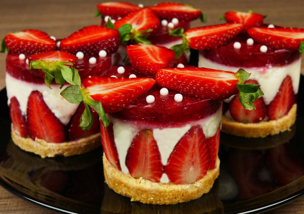Ελαφρύ επιδόρπιο με ζελέ φράουλα, φρούτα και μπισκότο