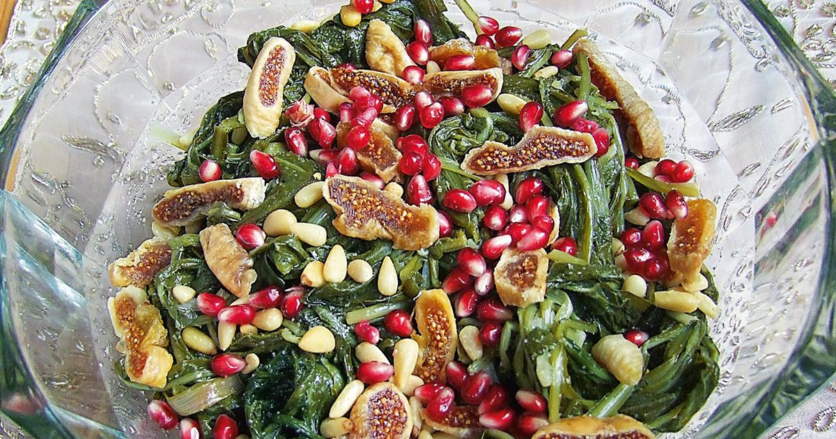 Χριστουγεννιάτικη σαλάτα με ρόδι, αποξηραμένα σύκα και καρύδια