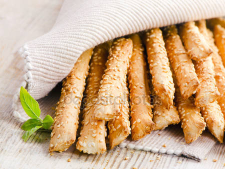 Σε ένα μπολ τοποθετούμε το ελαιόλαδο, το αλεύρι, το baking powder και το αλάτι (χρειάζεται περίπου 1 κουτ. του γλυκού αλλά αν θέλετε το τροποποιείτε). Ζυμώνουμε καλά και αφήνουμε τη ζύμη για περίπου 20 λεπτά να ξεκουραστεί. Πλάθουμε κορδόνια σε μήκος ίσο με αυτό που θέλουμε να έχουν τα κριτσίνια μας και τα ρολάρουμε σε ένα μικρό ταψάκι στο οποίο έχουμε τοποθετήσει το σουσάμι ώστε να κολλήσει επάνω τους. Τοποθετούμε σε ταψί με αντικολλητικό χαρτί. Ψήνουμε σε προθερμασμένο φούρνο στους 180 βαθμούς μέχρι να ροδίσουν.